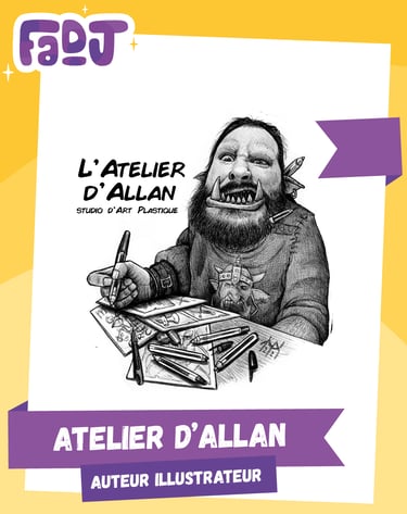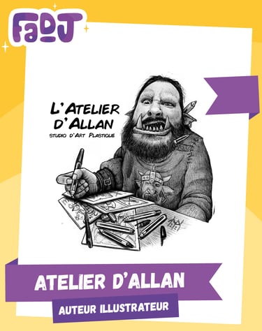 Allan a créé et édité un jeu de cartes entièrement illustré à la main dans lequel chaque couleur représente un peuple fantastique. Les carreaux sont des magiciens, les coeurs des chevaliers, les pique des orcs etc.