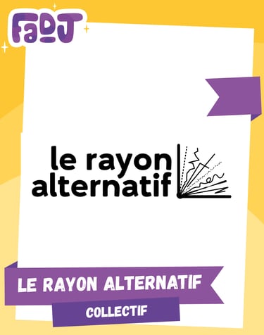 Le Rayon Alternatif est un collectif d’une douzaine d’auteur.ices et de passionné.es qui se matérialise en salon et convention pour promouvoir des JDR atypiques et enthousiasmants ! Le collectif met en avant sur son stand plus d’une cinquantaine de JDR qui présentent des imaginaires singuliers et des propositions ludiques originales, pour jouer avec ou sans MJ, en solo, à deux ou à plusieurs, en one-shot ou en campagne